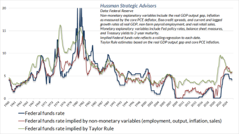 The Fed funds rate is already below the rate mandated by the Taylor rule. It is also below the rate indicated by non-monetary factors. (Chart Below) FFR is the blue line.