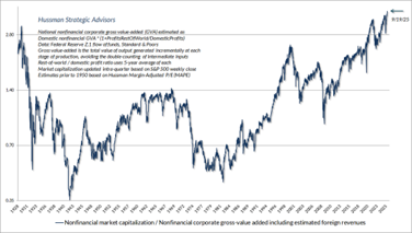The S&P flash U.S. services PMI beat the forecast, as did the S&P flash U.S. manufacturing PMI. They came in at 53.9 and 52.7, respectively, for September. New home sales easily beat the consensus forecast, with 800,000 new homes sold in August. The forecast was for 649,000. Personal income growth was higher than expected, as was personal spending. In short, the economy seems strong. Meanwhile, inflation remains well above the Fed’s 2% target. The Personal Consumption Expenditure price index (PCEPI) rose 2.7% year-over-year. The core PCEPI rose 2.9%. And financial conditions remain loose, according to the Chicago Fed’s National Financial Conditions Index (NFCI).