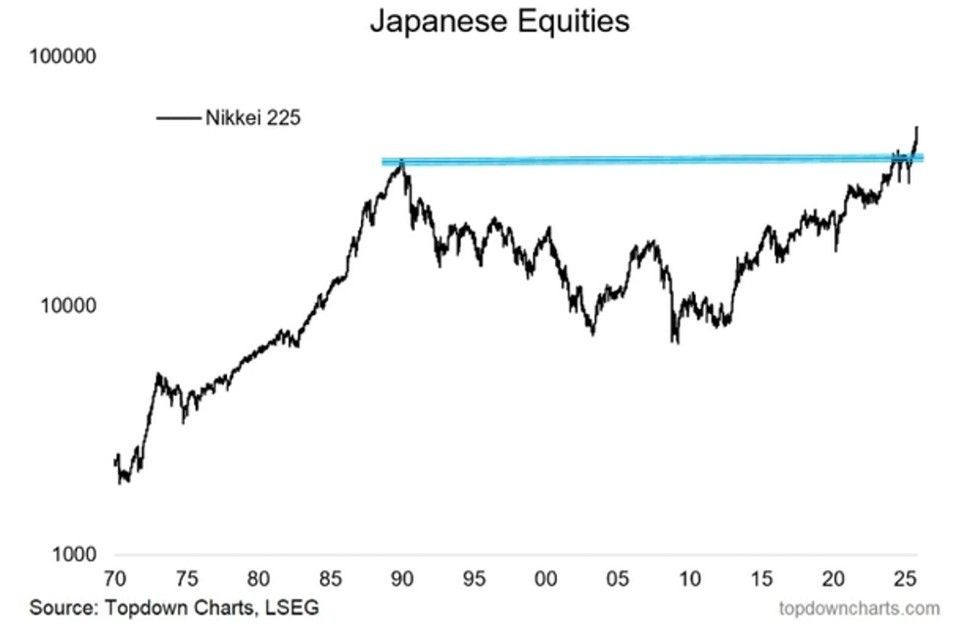 Cisco Systems finally topped its year 2000 share price of $78 last week. The Nasdaq fell by some 82% during the dot.com bust. It took 18 years for the tech sector to catch up to the S&P 500 index. It took the Nikkei 225 36 years to surpass its 1989 high. The Nikkei finally reached its new high this year.