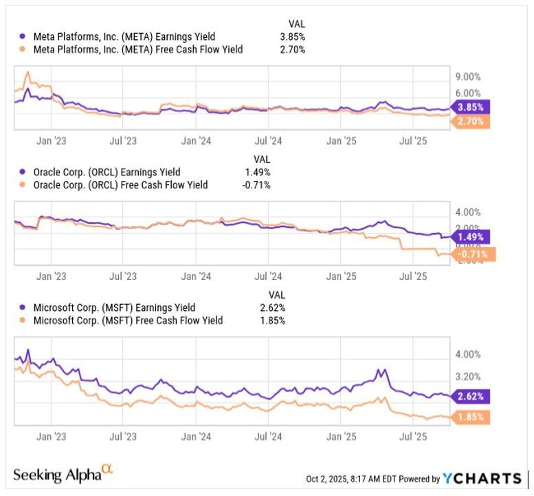 And their stocks are highly valued based on earnings yield and FCF yield (see chart below).