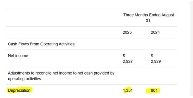 The massive AI capex of the last few years will start showing up in earnest on income statements soon. All the big spending hyperscalers will see a rapid increase in depreciation. Depreciation impacts reported earnings. ORCL is a good example. Revenues grew 12% year-over year. Net income was flat, though. The culprit was depreciation, which was up 68% year-over-year. (see chart below).